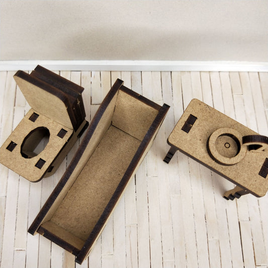 DIY Wooden Dollhouse Furniture Kit - Bathroom Set 3 - Mini Mansion Series