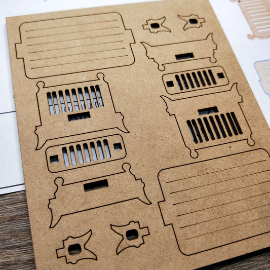 DIY Wooden Dollhouse Furniture Kit - Bedside Tables and Lamps - Mini Mansion Series