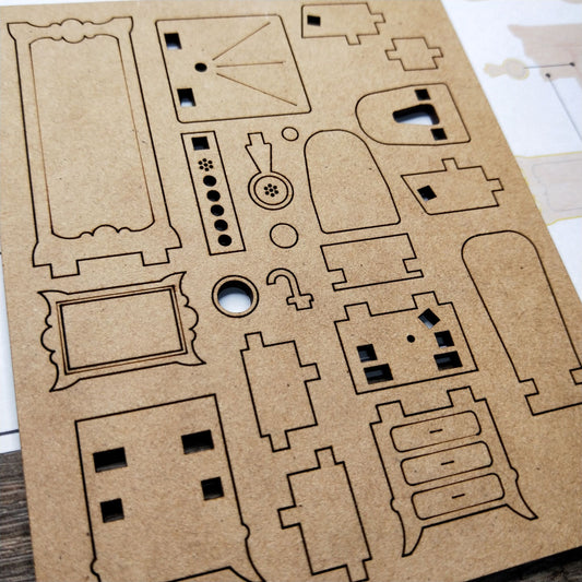 DIY Wooden Dollhouse Furniture Kit - Bed and Dresser - Mini Mansion Series