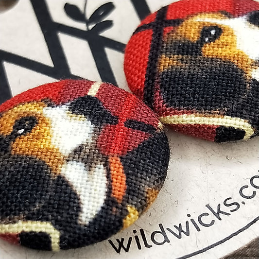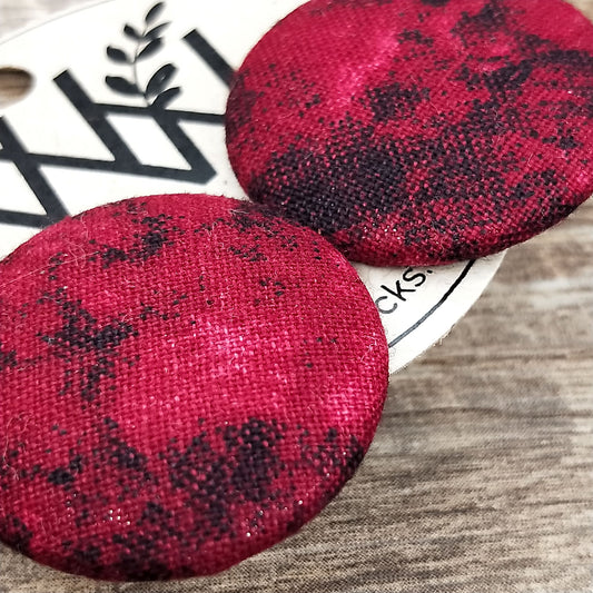 Wildears Fabric Covered Button Earrings Blood Moon 27mm