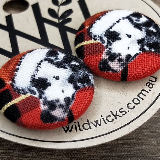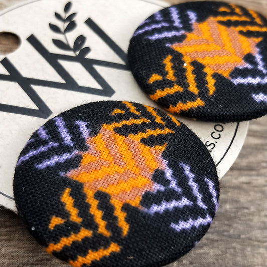 Wildears Fabric Covered Button Earrings Halloween Houndstooth 27mm