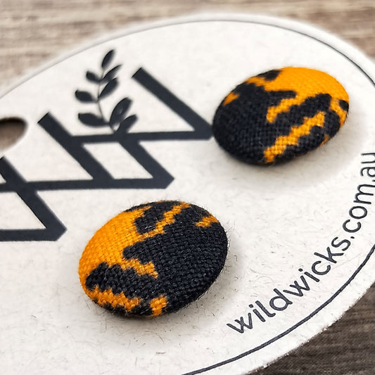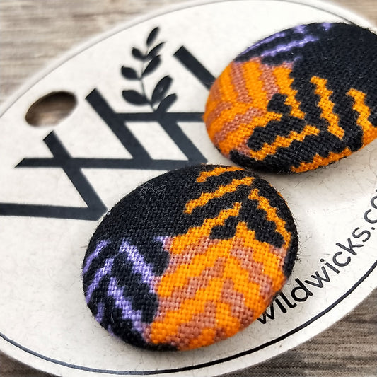 Wildears Fabric Covered Button Earrings Halloween Houndstooth 19mm