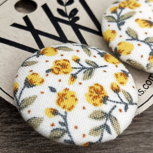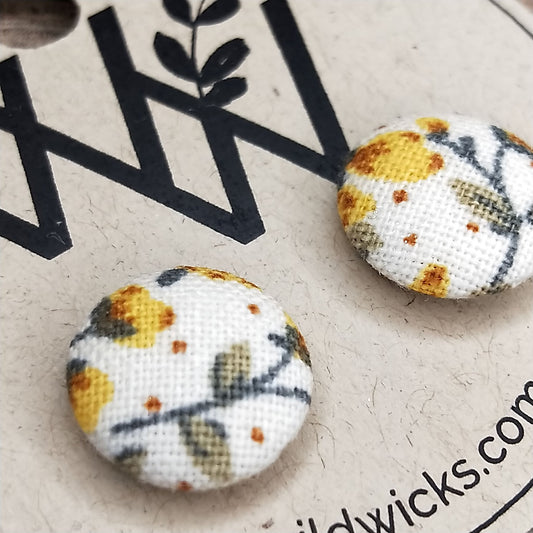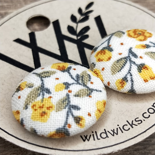 Wildears Fabric Covered Button Earrings Tiny Yellow Floral 27mm