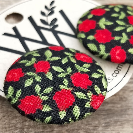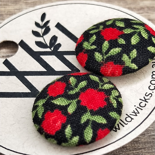 Wildears Fabric Covered Button Earrings Tiny Red Rose 27mm