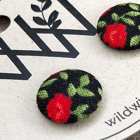 Wildears Fabric Covered Button Earrings Tiny Red Rose 19mm