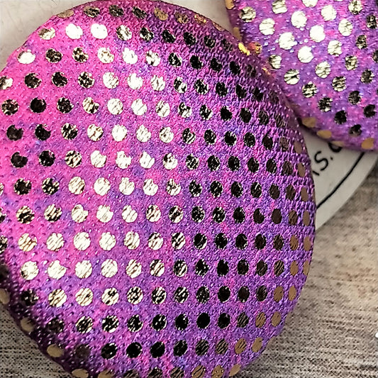 Wildears Fabric Covered Button Earrings Gold Spot Pink Purple 27mm