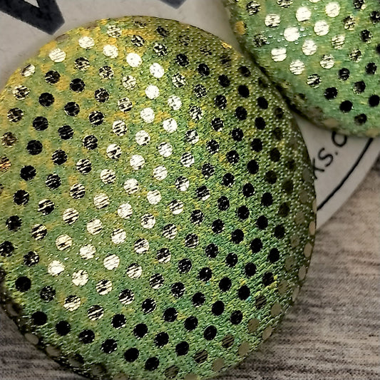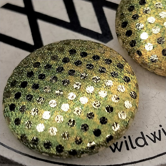 Wildears Fabric Covered Button Earrings Gold Spot Lime 27mm