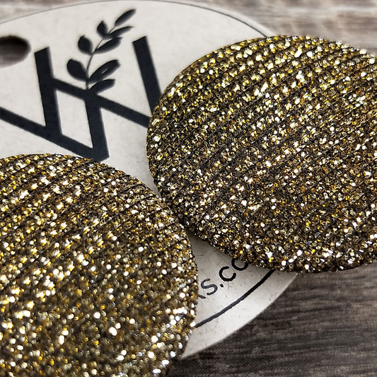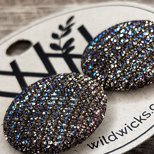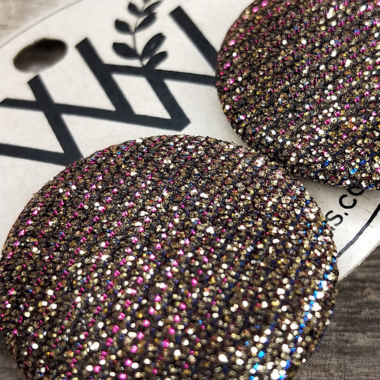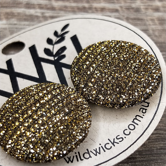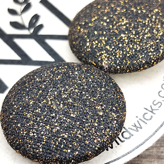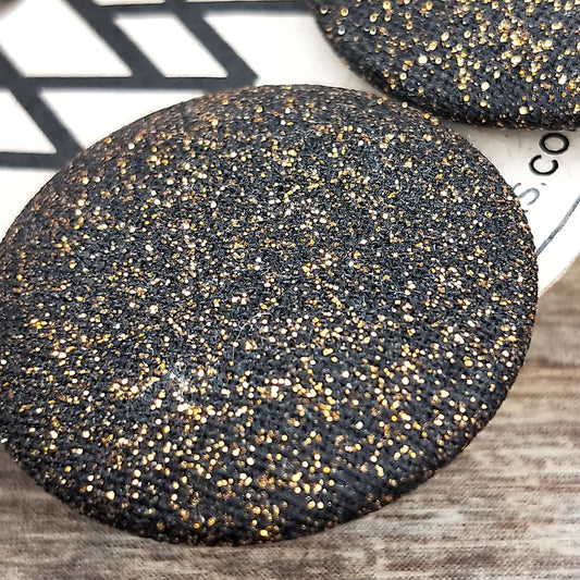 Wildears Fabric Covered Button Earrings Black Gold Dust 27mm