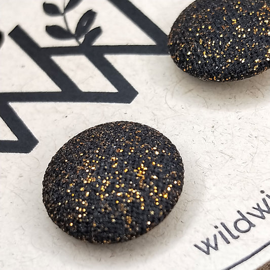 Wildears Fabric Covered Button Earrings Black Gold Dust 12mm