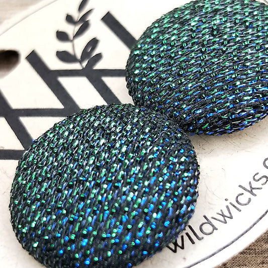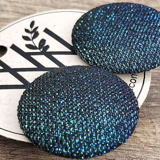 Wildears Fabric Covered Button Earrings Black Green Blue 27mm