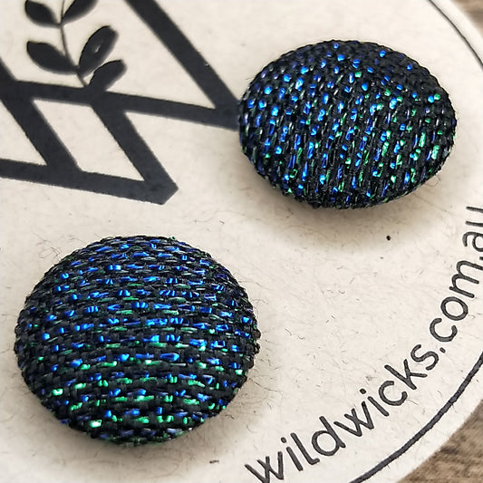 Wildears Fabric Covered Button Earrings Black Green Blue 19mm