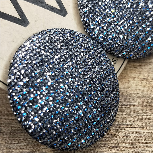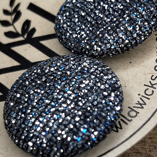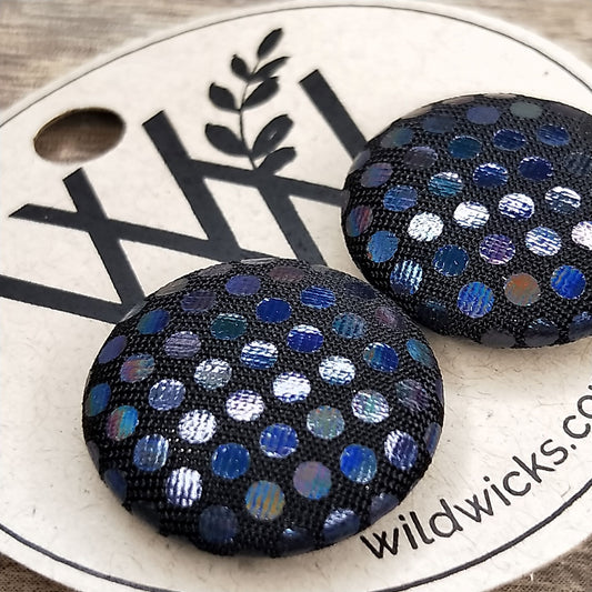 Wildears Fabric Covered Button Earrings Black Blue Silver 27mm