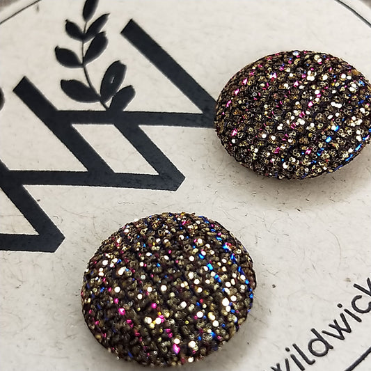 Wildears Fabric Covered Button Earrings Black Gold Dust 19mm