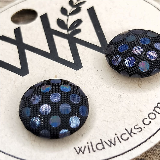 Wildears Fabric Covered Button Earrings Black Metallic Dots 12mm