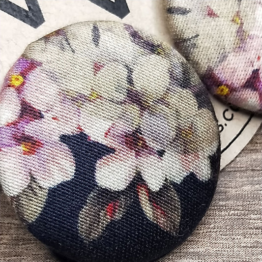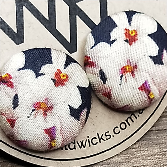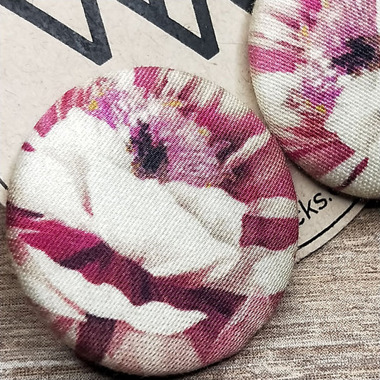 Wildears Fabric Covered Button Earrings Vintage Floral 4 27mm