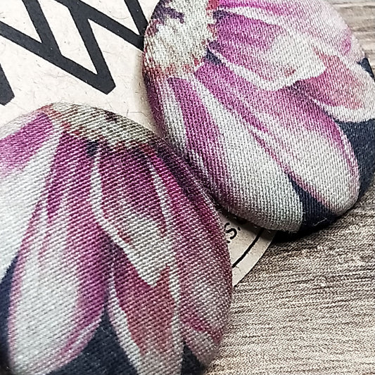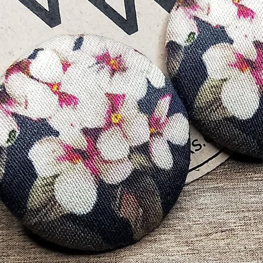 Wildears Fabric Covered Button Earrings Vintage Floral 1 27mm