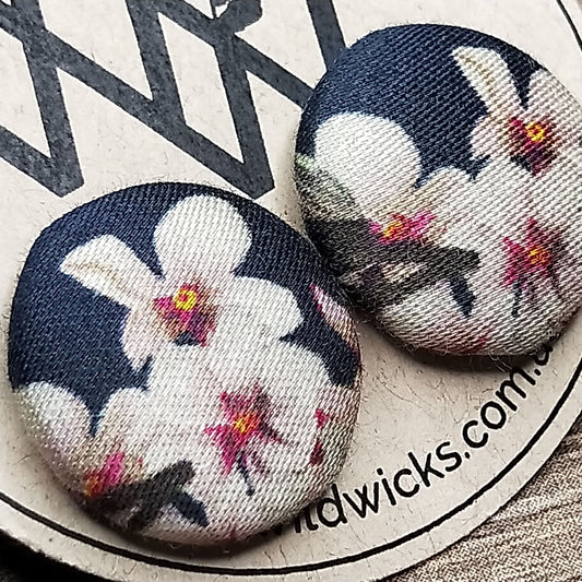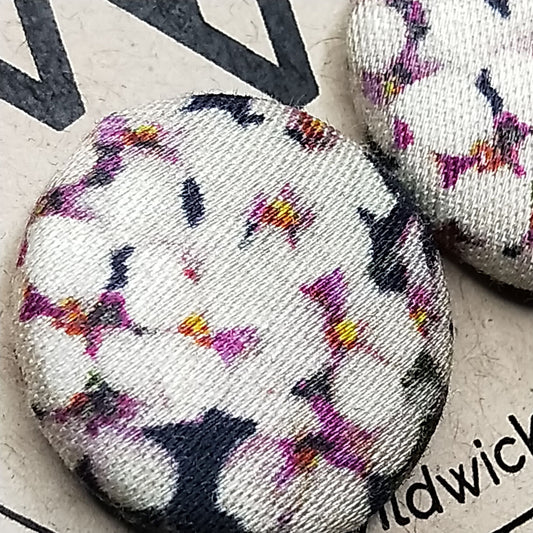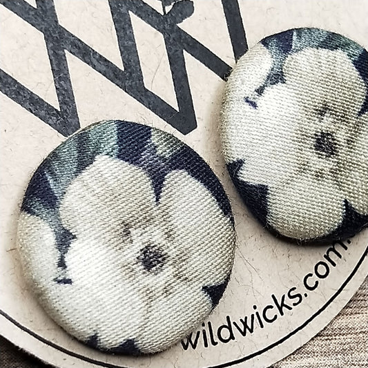 Wildears Fabric Covered Button Earrings Vintage Floral 7 19mm
