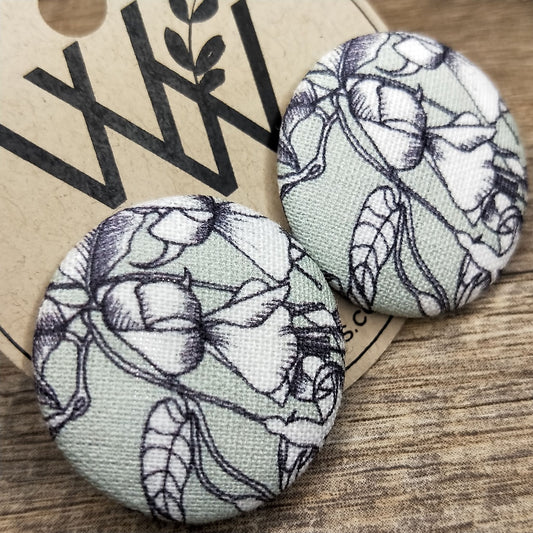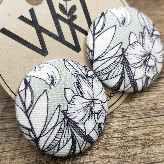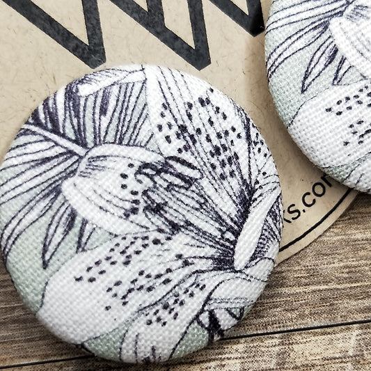 Wildears Fabric Covered Button Earrings Lily 27mm
