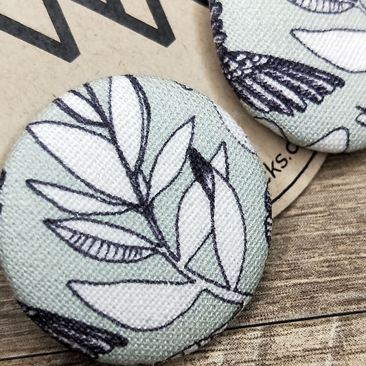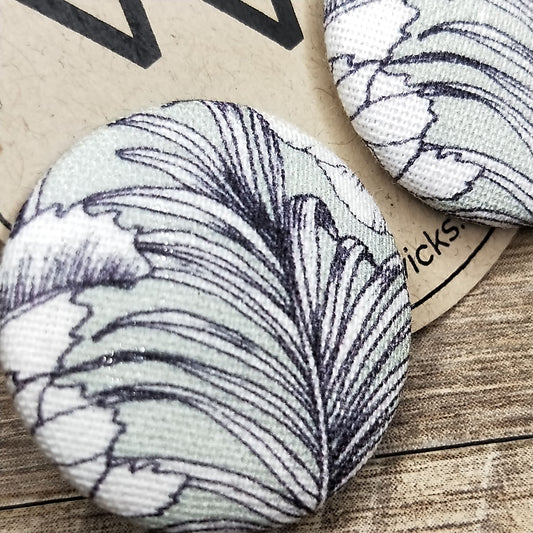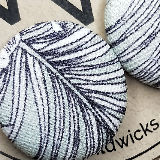 Wildears Fabric Covered Button Earrings Palm Leaf 27mm