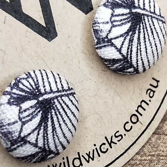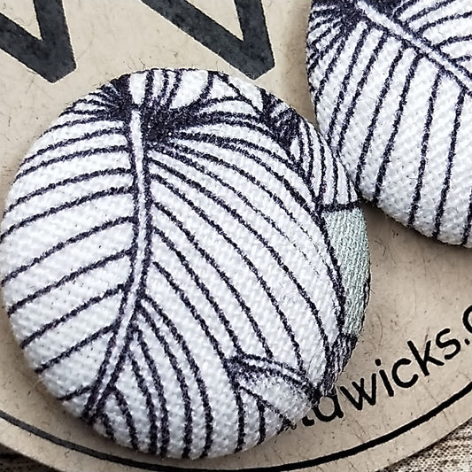 Wildears Fabric Covered Button Earrings Palm Leaf 19mm
