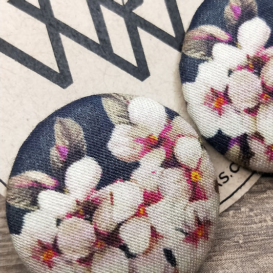 Wildears Fabric Covered Button Earrings Floral 27mm