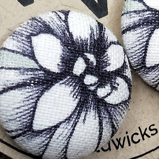 Wildears Fabric Covered Button Earrings Flower 19mm