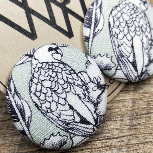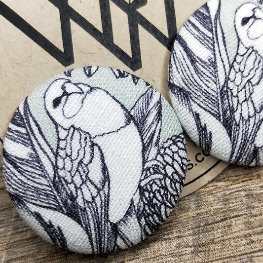 Wildears Fabric Covered Button Earrings Parrot 27mm