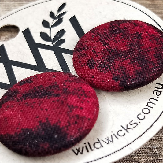 Wildears Fabric Covered Button Earrings Blood Moon 19mm