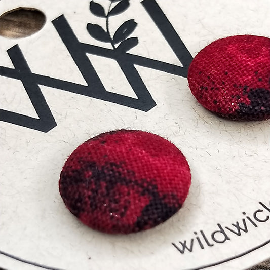 Wildears Fabric Covered Button Earrings Blood Moon 12mm