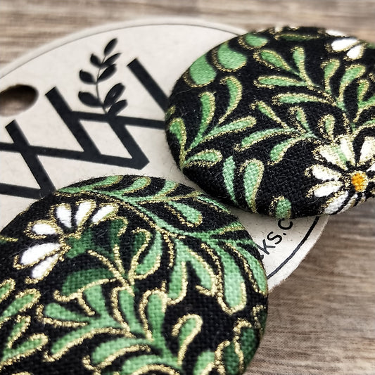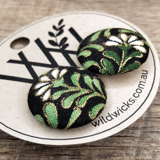 Wildears Fabric Covered Button Earrings Daisy Vine 27mm