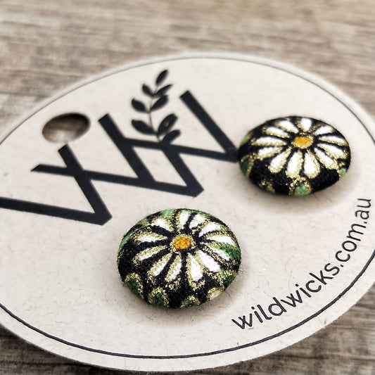 Wildears Fabric Covered Button Earrings Daisy Vine 12mm