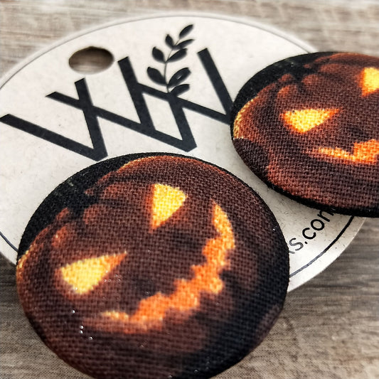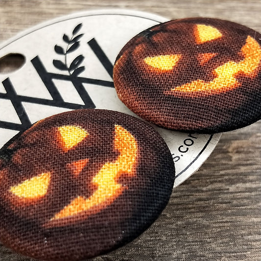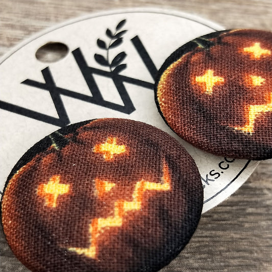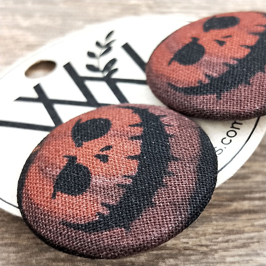 Wildears Fabric Covered Button Earrings Pumpkin Head 27mm
