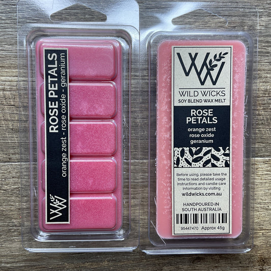 Wild Wicks Soy Wax Snap Bar Melts - Rose Petals